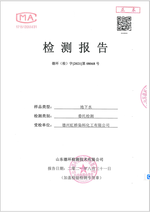 德州虹橋染料化工有限公司地下水檢測(cè)報(bào)告2021.08.31